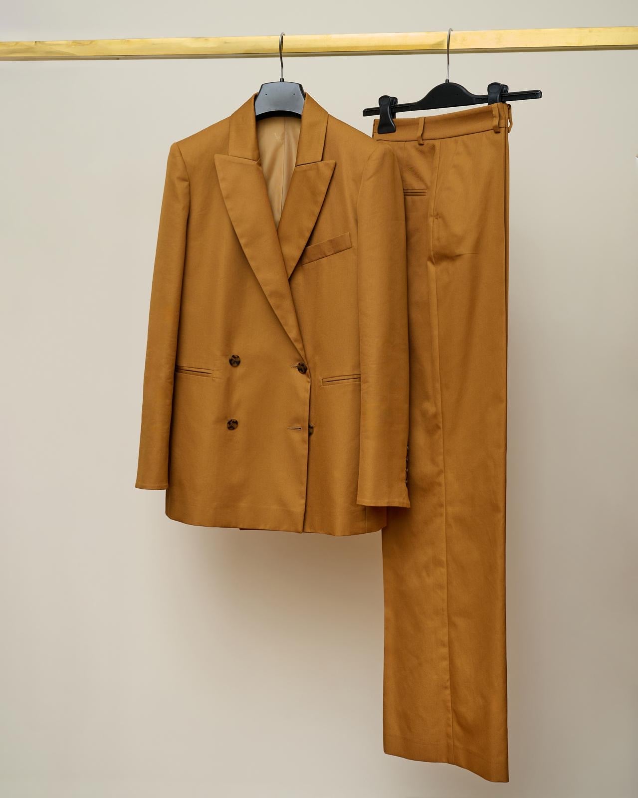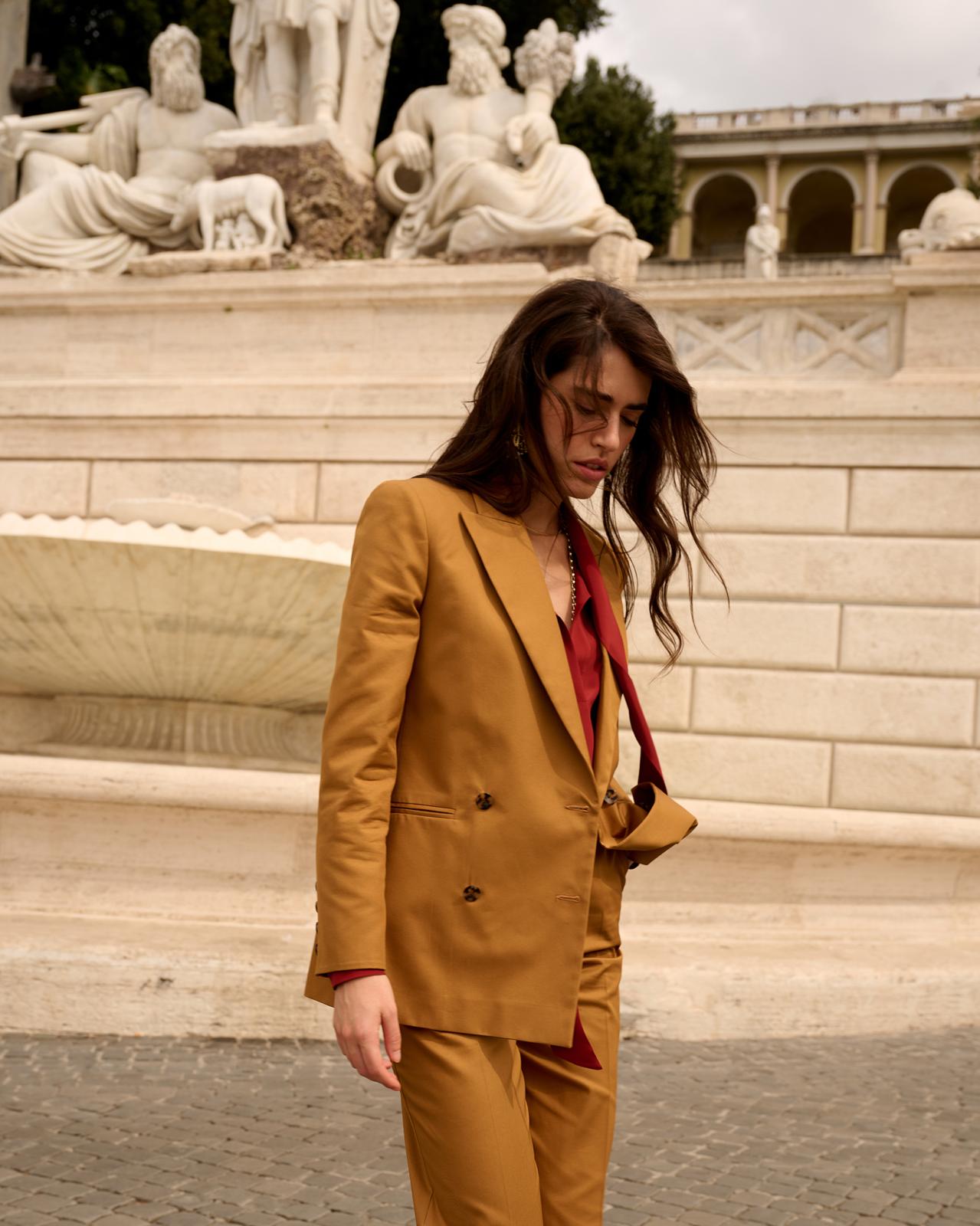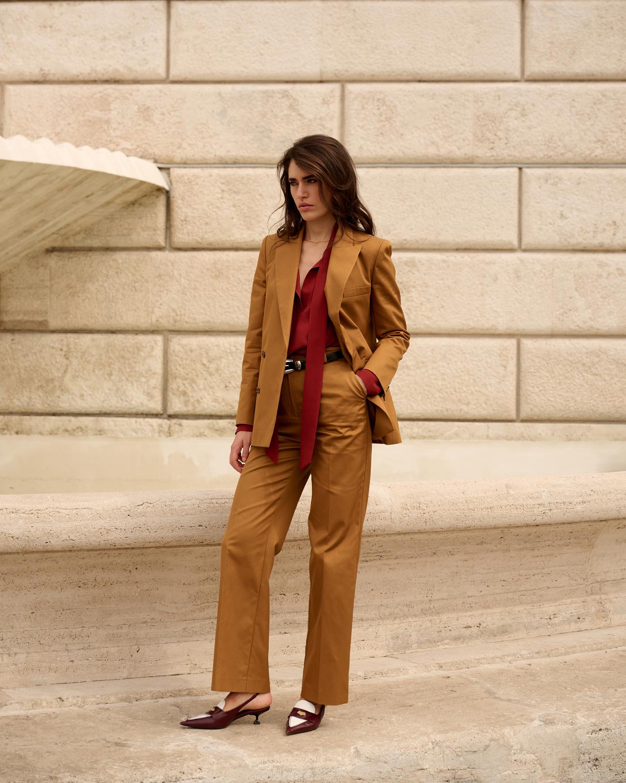 Un completo sartoriale che gioca nei toni speziati della stagione: Mostarda, un senape sofisticato e versatile, e Paprika, una tonalità "arancio" intenso e luminoso, dove il colore e la costruzione sartoriale esaltano l’identità personale